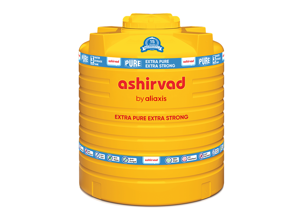 “ASHIRVAD PURE” water storage tank is equipped with Nano-Silver technology, which gives anti-bacterial properties to the inner layer of the tank. It inhibits the growth of bacteria on the surface of the tank and hence makes the water safe for drinking and human consumption.