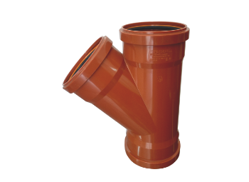 The Branch Triple Socket is a UGD pipe fitting that has three socketed ends that connect two plain branch sewer lines or waste lines to the mainline at an angle of 45 degrees in the sewage system.