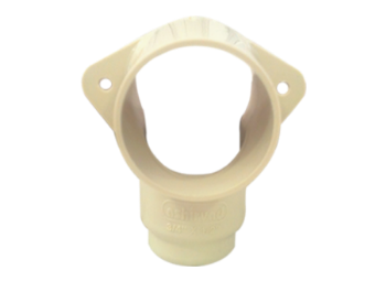 This plastic CPVC component can be used to screw an elbow fitting into the wall. Made of plastic with two circular screw-shaped holes on each side, the elbow holder helps maintain network composure at the angular joints of the plumbing network.